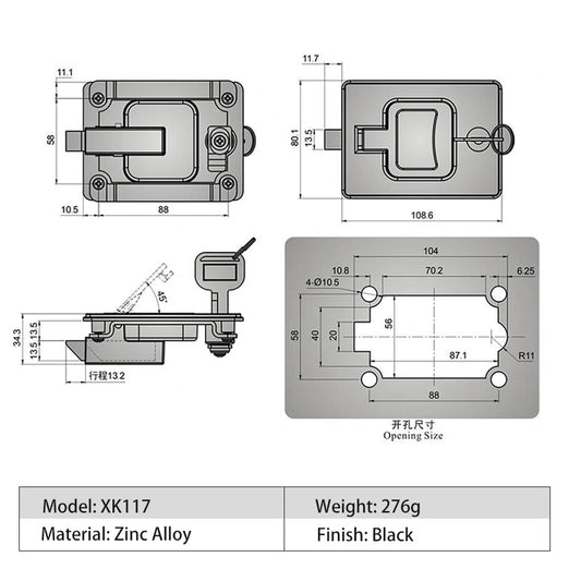 poignée a compression fermeture en bas avec ou sans clés noir ou inox